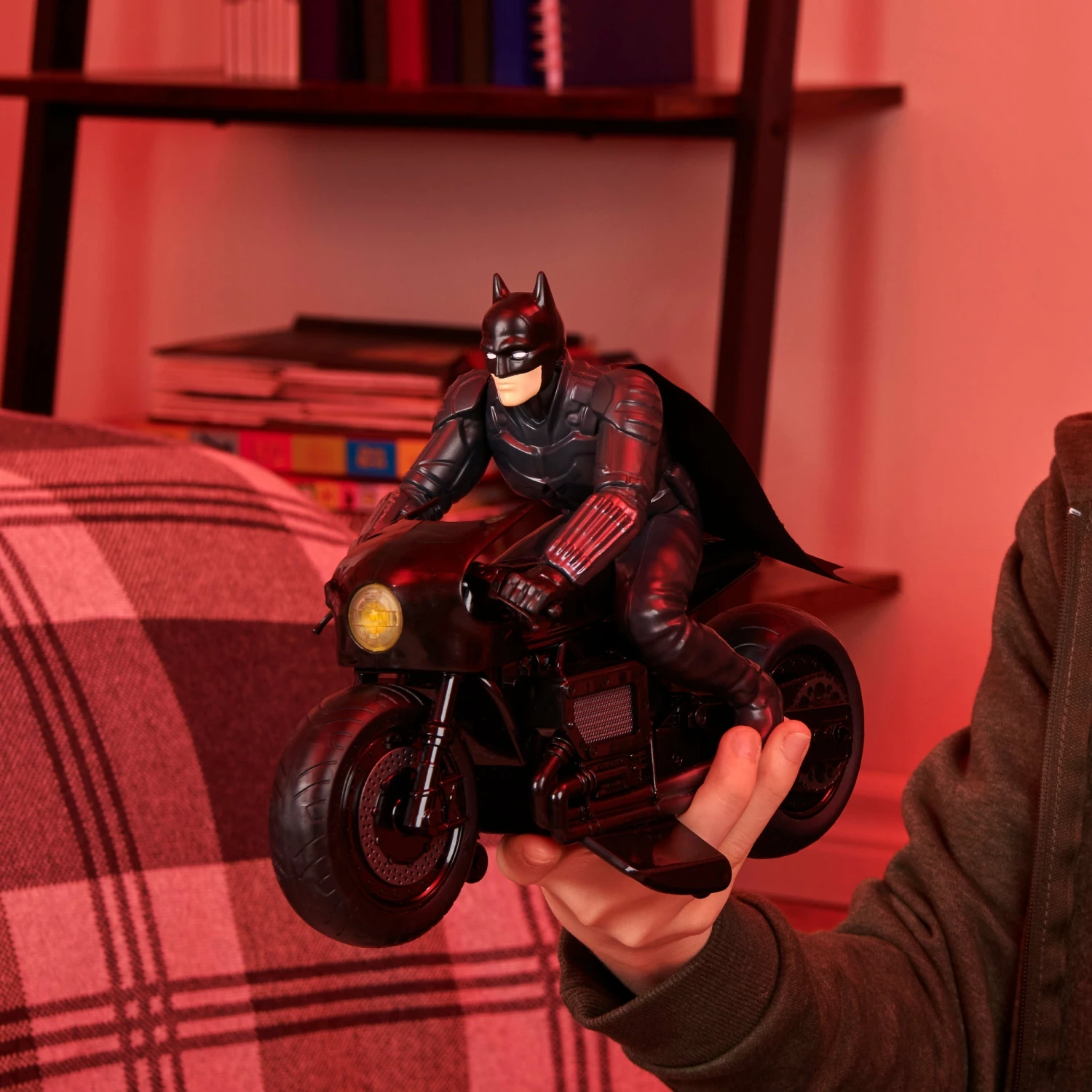 The remote control Batcycle with a fixed Batman figure features an easy to drive remote control, authentic The Batman Movie styling, and incredible details that bring your Batcycle to life.