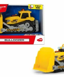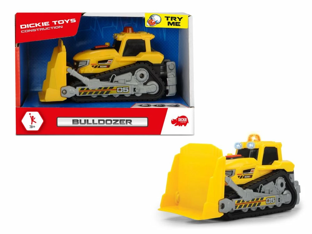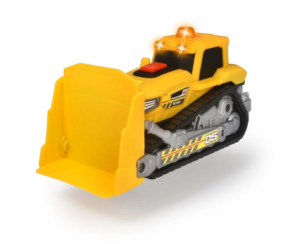 Dickie Toys Bulldozer – cool bulldozer with moving shovel. This popular bulldozer from Dickie Toys is a must-have in any children’s bedroom. The yellow bulldozer features a large shovel that can move sand, stones and bricks. It is ideal for use in sandpits and at the beach. The large, flat shovel and wheels can be moved effortlessly by small hands. The bulldozer also has light and sound effects for extra fun, and makes an ideal toy for children aged 3 and above. Treat your little one to this fun bulldozer and discover more commercial and construction vehicles in the Dickie Toys range!