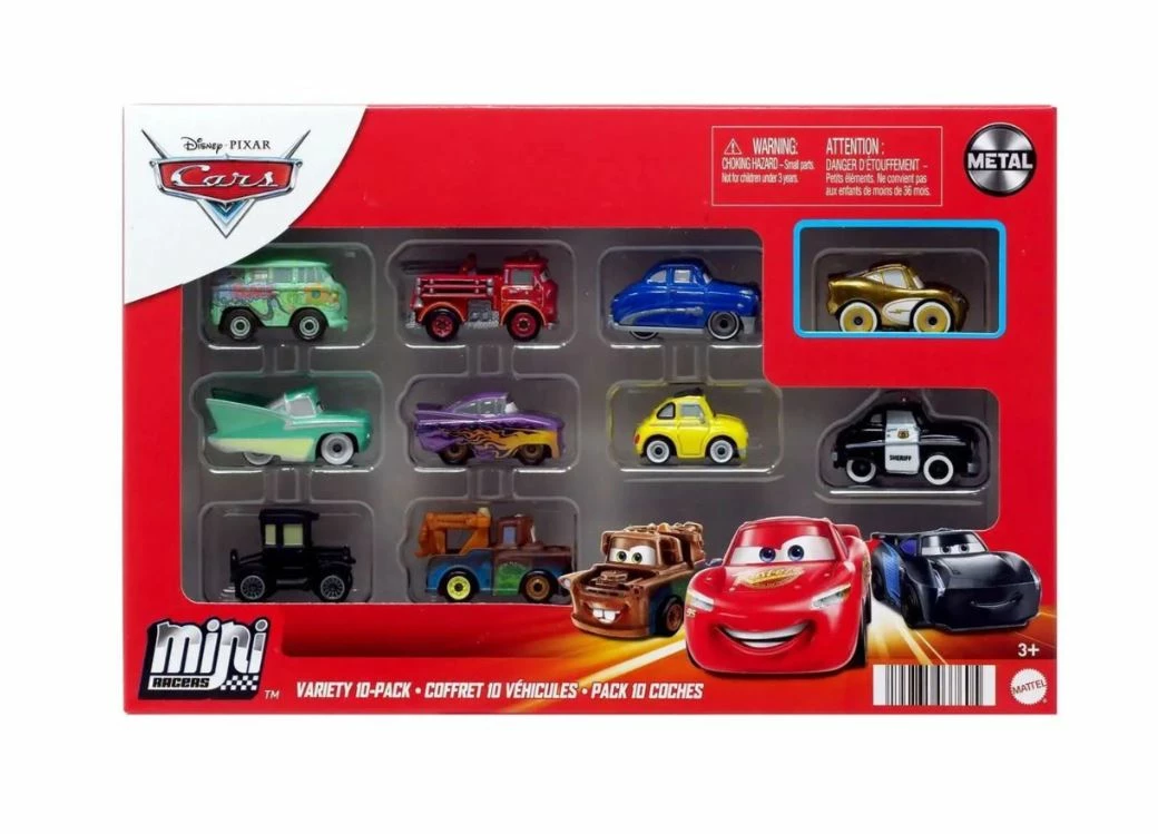 Race off to exciting Disney and Pixar Cars movie adventures with this huge variety pack of specially stylized mini vehicles. Each character has a metal body, rolling wheels and iconic details so you can recreate your favourite scenes and competitions.