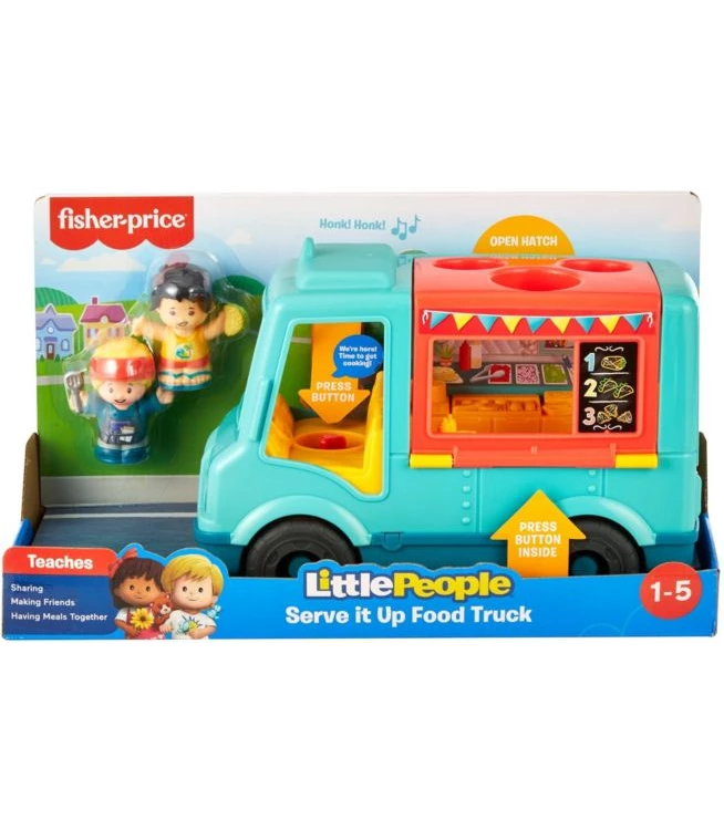 Order up! Toddlers can order, cook and serve up hours of delicious pretend play with the Little People® Serve It Up Food Truck from Fisher-Price®.