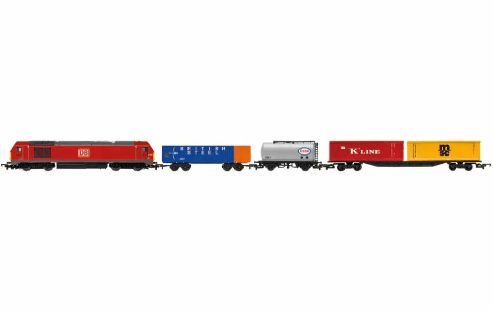 This Train Set depicts a powerful modern diesel locomotive and wagons used to transport crucial supplies to eagerly waiting customers across the country.