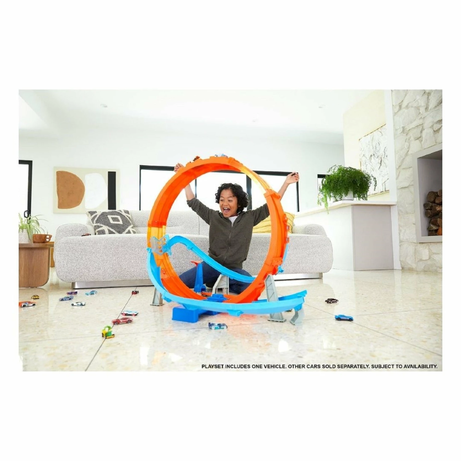 The Hot Wheels Massive Loop Mayhem track set will definitely make kids loopy from the thrilling excitement! This epic track includes a huge 71cm wide loop that’s designed for multi-car play — vehicles whip around the loop and avoid nail-biting near-misses with each other! Kids send the first car into action using the slam launcher, then add more and more cars until there’s the inevitable crash (additional cars sold separately). The challenge lies in how many cars can run at once — it’s a trick of timing and skill. The track comes with one 1:64 scale Hot Wheels vehicle to get the action started! Colours and decorations may vary. Key Features: The Hot Wheels Massive Loop Mayhem track set is a huge looping challenge that’s full of excitement and thrills! It includes a 71cm wide track loop around which multiple cars race and avoid near misses. One Hot Wheels vehicle is included, but the challenge lies in how many cars kids can have flying around the track at one time before there’s an awesome crash (additional cars sold separately)! A battery box booster keeps the cars in continuous motion through the epic loop! (Batteries not included.) The Hot Wheels Massive Loop Mayhem set is an awesome gift for kids 5 years old and up who love the thrill of stunting and crashing their Hot Wheels vehicles.