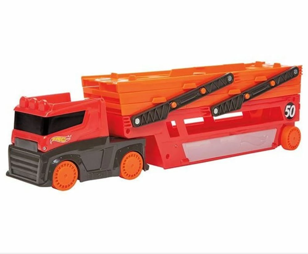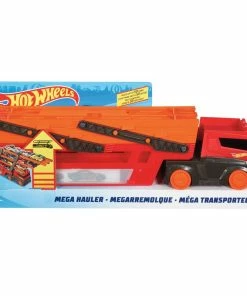 Connect the Mega Hauler to Hot Wheels orange track and roll cars right into a side-by-side race for traditional track play, too! Features: Unique Hot Wheels Mega Hauler with awesome features makes a great gift for kids and collectors!