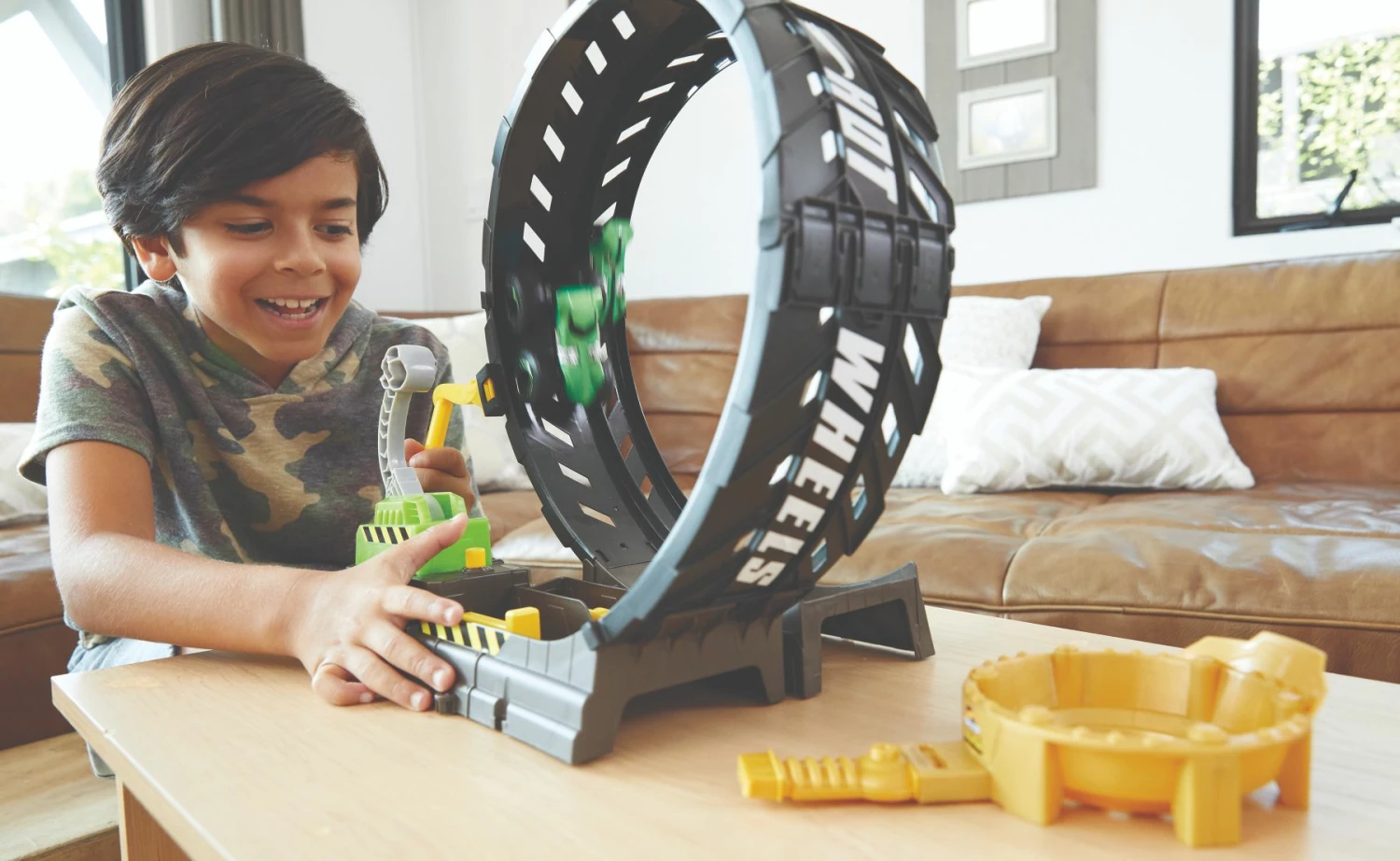 It’s an epic head-to-head challenge in this original Hot Wheels Monster Truck loop set! This amazing track set lets you race your favorite Hot Wheels cars against the powerful Hot Wheels Monster Trucks. Who will win? Inspired BIG tire styling with black tire treads designed on the loop itself! The set provides stunting and crashing action with Hot Wheels? Monster Trucks and Hot Wheels basic cars. Launch vehicles around the loop to land in the trophy cup! This original playset includes a Hot Wheel? Monster Truck and a Hot Wheels 1:64 scale vehicle for creating story-telling moments with Hot Wheels! Great addition to kids’ world of Hot Wheels Monster Trucks. Great gift ideas for ages 4 years and older. Colors and decorations may vary. Not for use with some Hot Wheel vehicles. Features: Amazing GIANT loop is the first stunt loop in the Hot Wheels Monster Truck world! Hot Wheels Monster Truck signature BIG wheels inspired this original loop concept with tire styling and stunt appeal kids will love. The set includes a launcher and a ramp so kids can be the ultimate winner and capture the trophy cup! Includes a Hot Wheels Monster Truck and a Hot Wheels 1:64 scale vehicle-but only one can win! ?Build a Monster Truck world and connect this set to the Hot Wheels Monster Truck Pit & Launch set (sold separately, subject to availability). Great gift idea for kids 4 years and older with a passion for action. Rev up kids’ imagination with integrated play, storytelling opportunities and creative challenges. Hot Wheels Monster Trucks Epic Loop Challenge Play Set Includes Monster Truck and 1:64 Scale Hot Wheels car ages 3 and older Hot Wheel Monster Trucks Epic Loop, one Hot Wheels Monster Truck, one 1:64 Hot Wheels die-cast car.