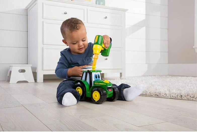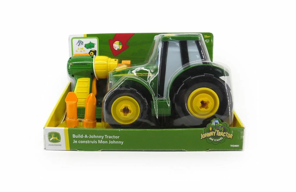 Build-A-Johnny Tractor features two ways to play; free rolling tractor or buildable set. This 16-piece set includes a battery powered drill to take apart and build Johnny Tractor back together again. Made of chunky parts, easy for little hands to assemble.