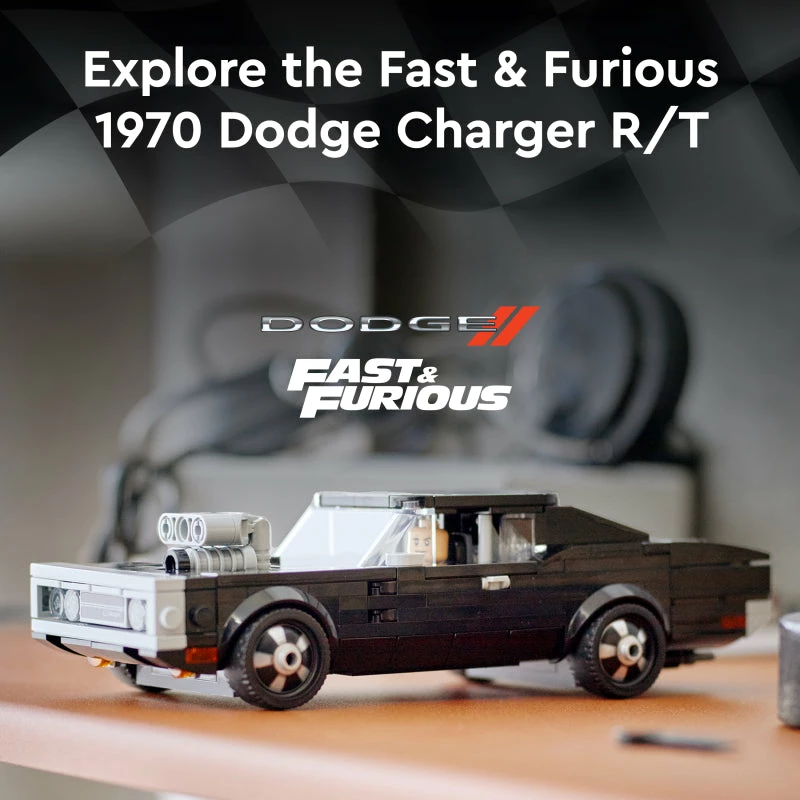 A collectible model for play and display – Build the Fast & Furious 1970 Dodge Charger R/T, show it off to friends and enjoy race and car-chase action against other Speed Champions vehicles