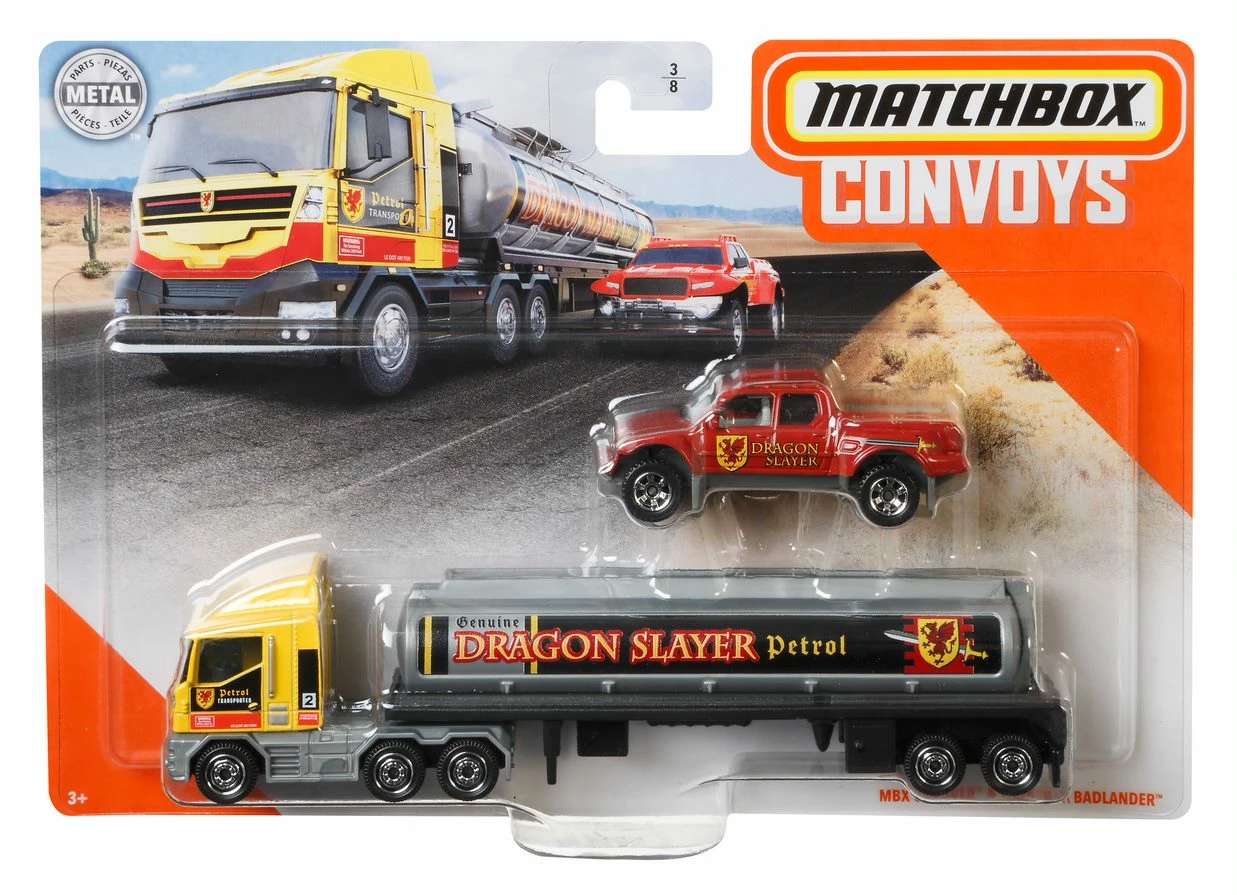 Matchbox delivers incredible and realistic convoys for maximum collectability and play! Each rig is 7-inches long with a detachable cab and includes an awesome 1:64 scale Matchbox vehicle.