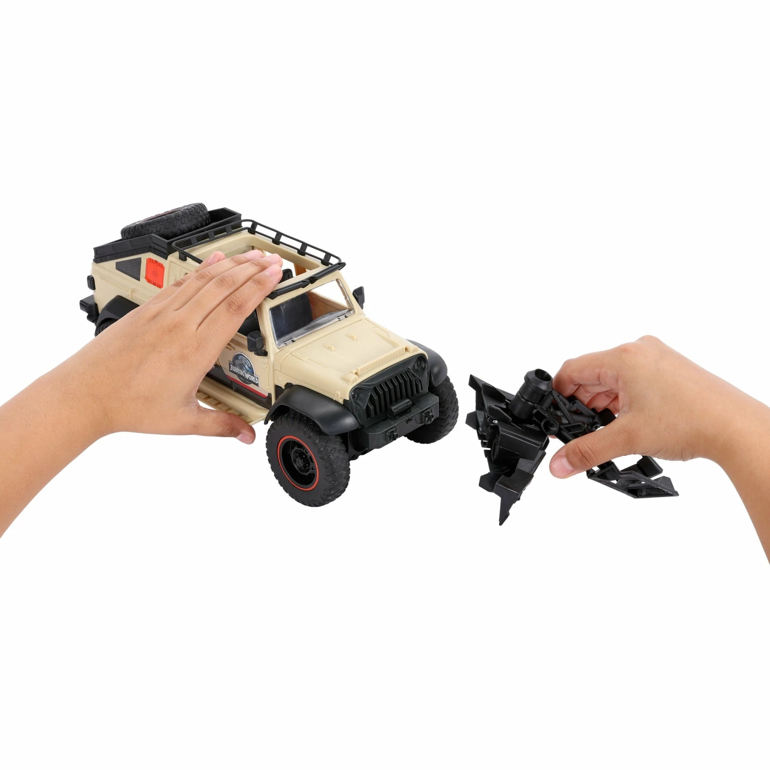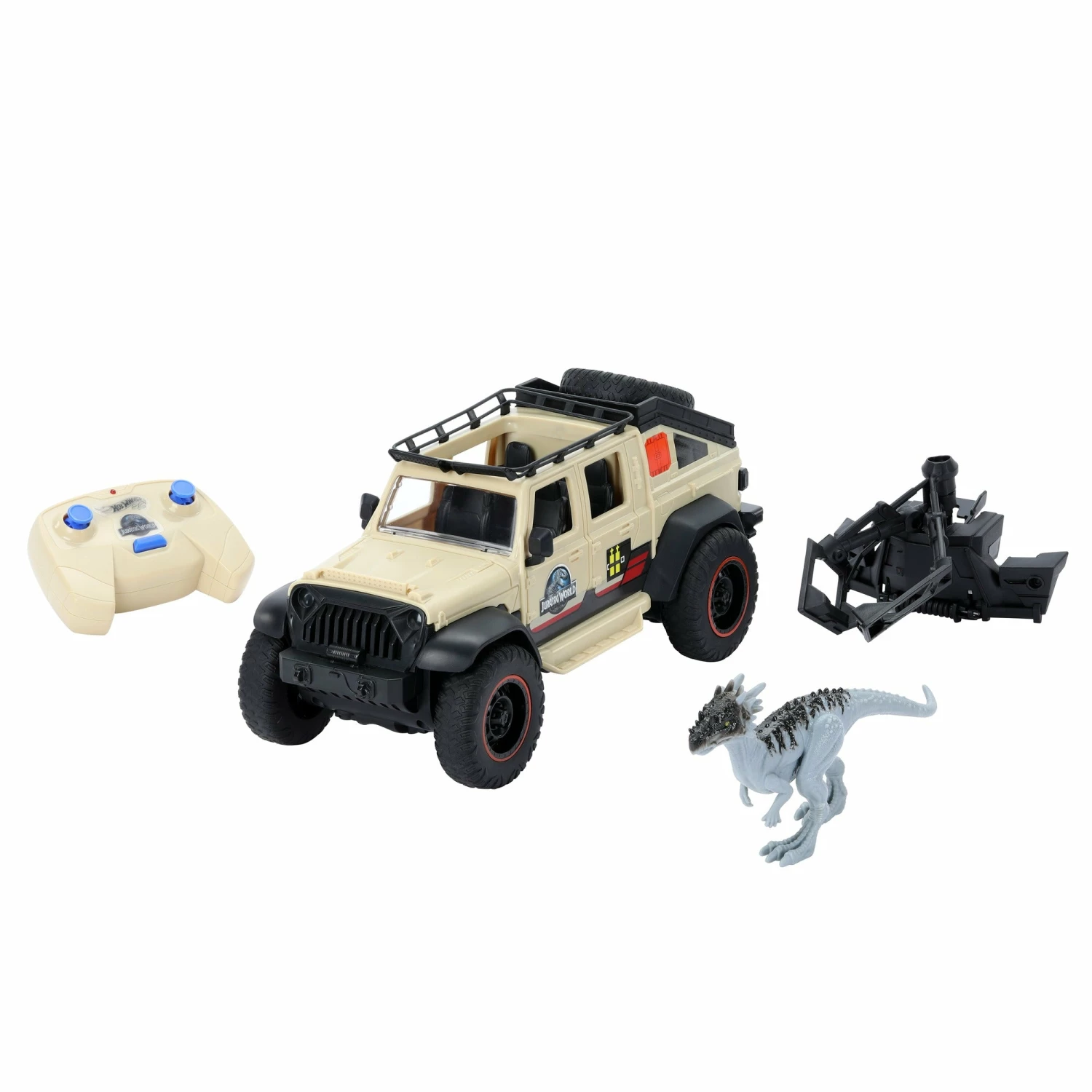 Recreate the thrills and excitement from Jurassic World Dominion with this movie-inspired R/C vehicle! The stylized Jeep Gladiator features true-to-movie details and comes with a remote control, removable auto-capture claw and 15cm Dracorex Dino figure that encourages kids to recreate their favourite scenes from the film or invent new ones.
