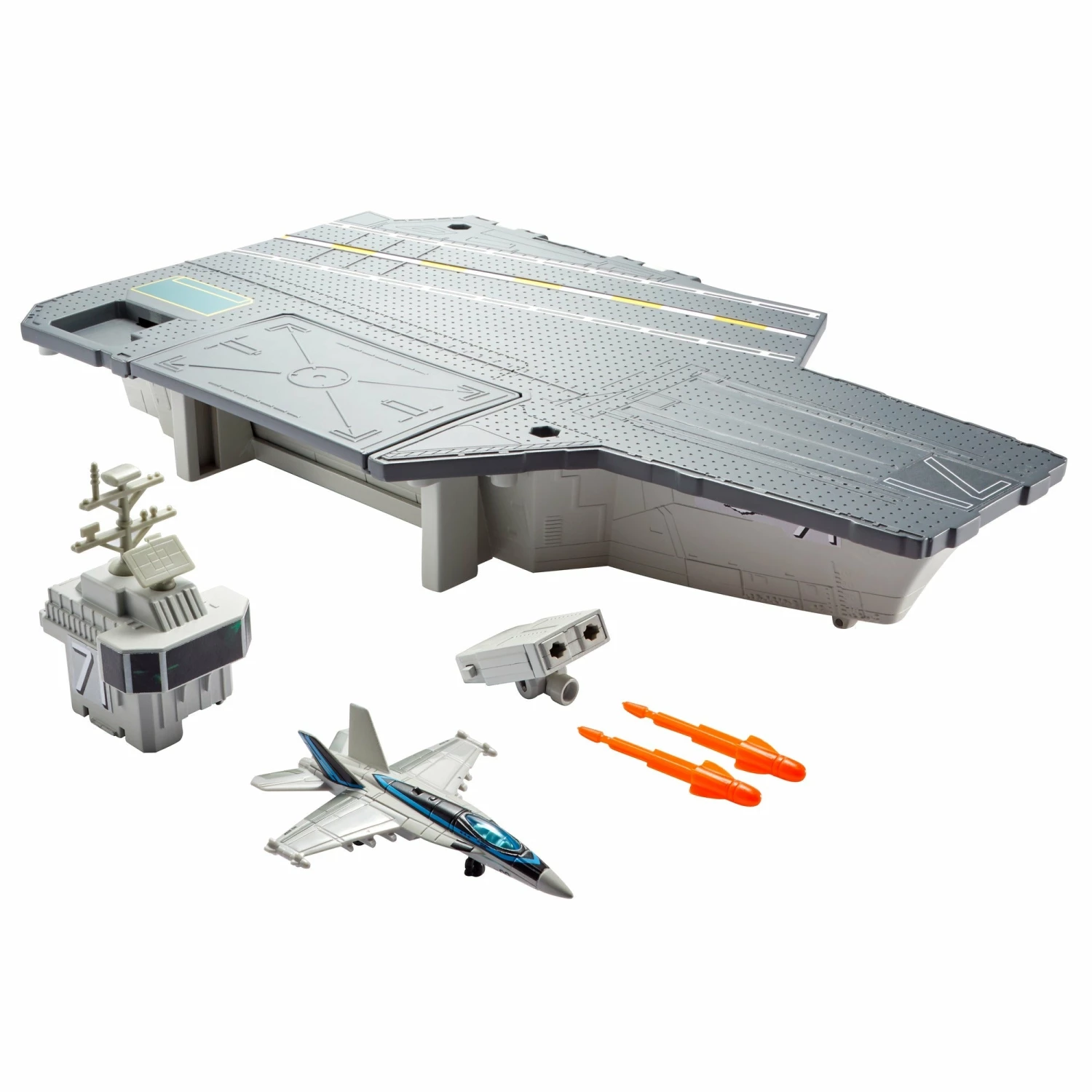 Matchbox® delivers an Aircraft Carrier inspired by the new Top Gun Maverick movie that includes a Top Gun Boeing F/A 18 die-cast jet, real working missile launchers and storage for up to 10 Sky Busters®! Push a button to unlock storage and transform into a full-size ship with an aircraft elevator and plenty of room for landing. ? 3+