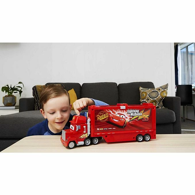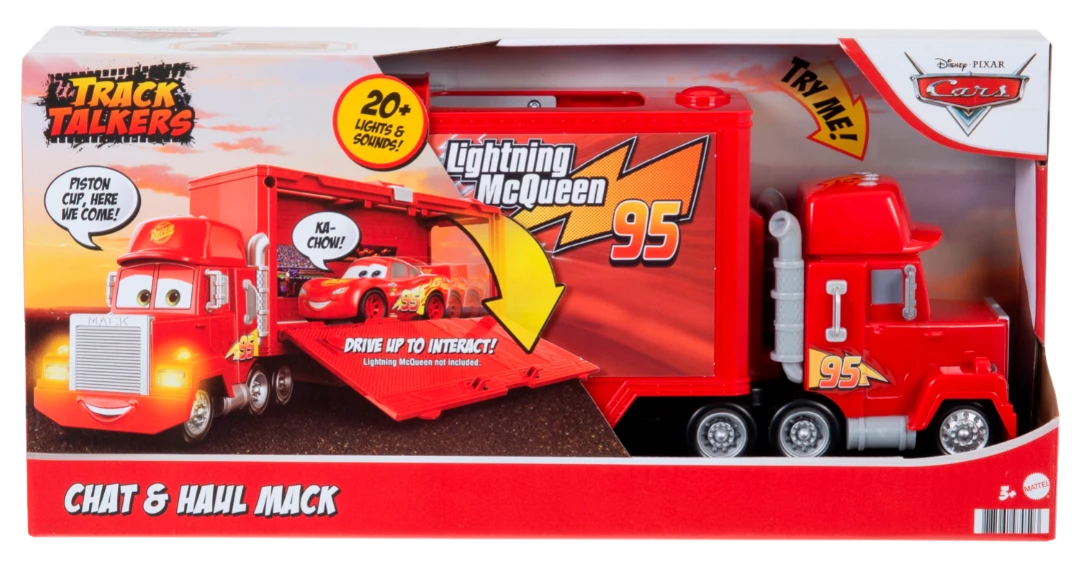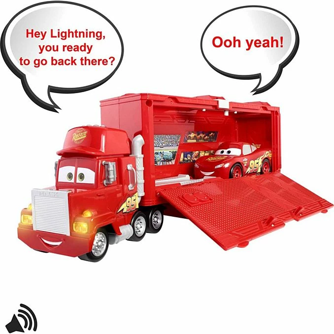 - With just a press of the button, Mack – Lightning McQueen’s famous hauler emits authentic sounds and phrases that Disney and Pixar’s Cars fans know and will love to imitate.
