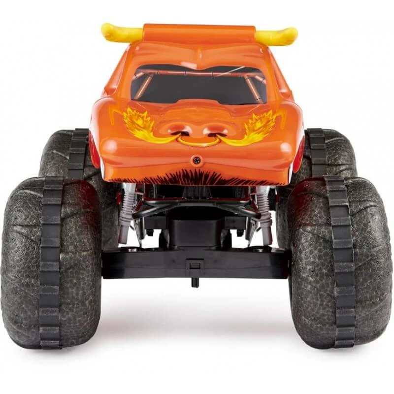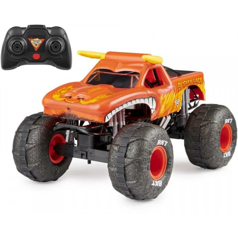 Recreate the epic action and atmosphere of Monster Jam with authentic monster truck sounds! Perform high-octane stunts like big air, donuts, cyclones and more! The wireless remote-control features 2.4 GHz frequency, so you can race up to six Monster Jam trucks with your friends and host your very own Monster Jam rally! Experience the epic Monster Jam action with your very own El Toro Loco RC!