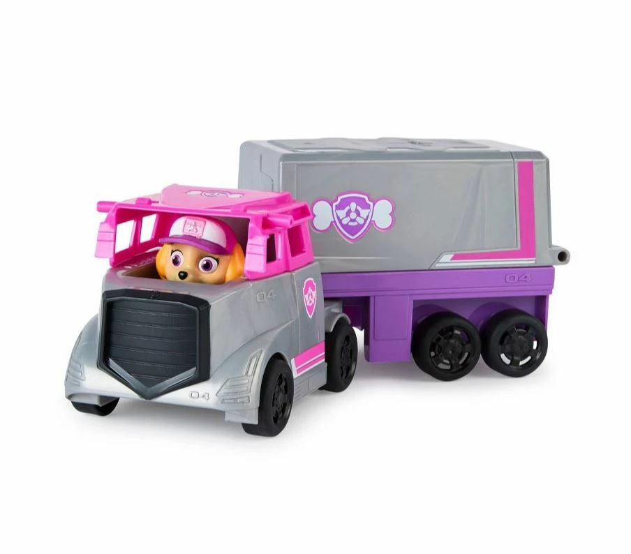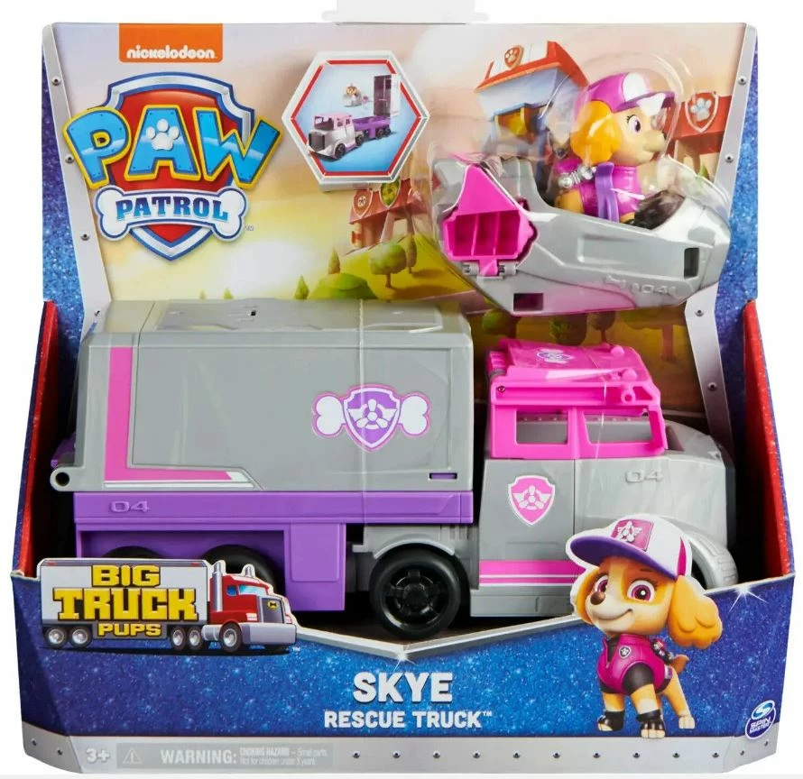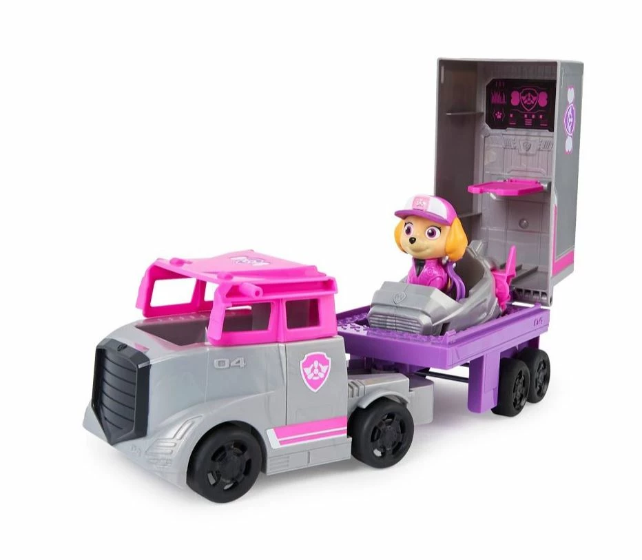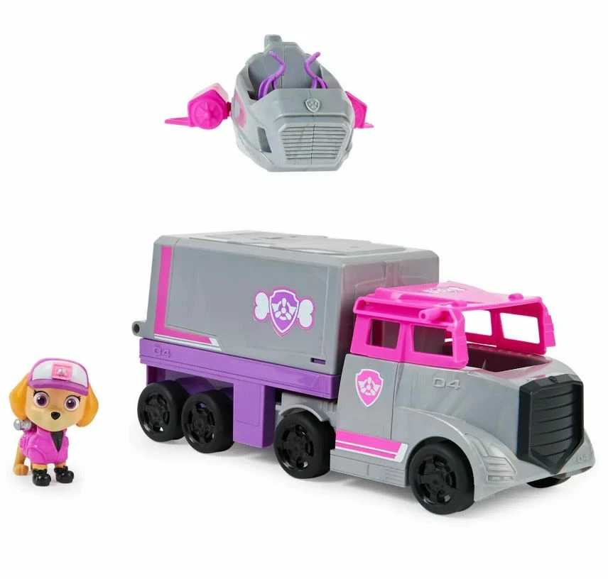 Team up with Skye for some action packed highway rescues, in her Big Truck Pup – Rescue Truck! Skye’s big rig rescue truck features an exciting vehicle transformation. Simply lift the truck cab roof, to get Skye in and out of the driver’s seat, then raise the trailer roof to activate command center mode, which converts the truck trailer into a 2-story command center and reveals her rescue jet, making it the perfect rescue vehicle for high-speed rescue missions on the highway and in the air! With PAW Patrol toys a kid can explore his or her imagination and develop their motor skills through pretend play as they relive their favorite scenes from the show, like the Mighty Pups and the PAW Patrol Movie, or create entirely new adventures, with all of the PAW Patrol pups (each sold separately).