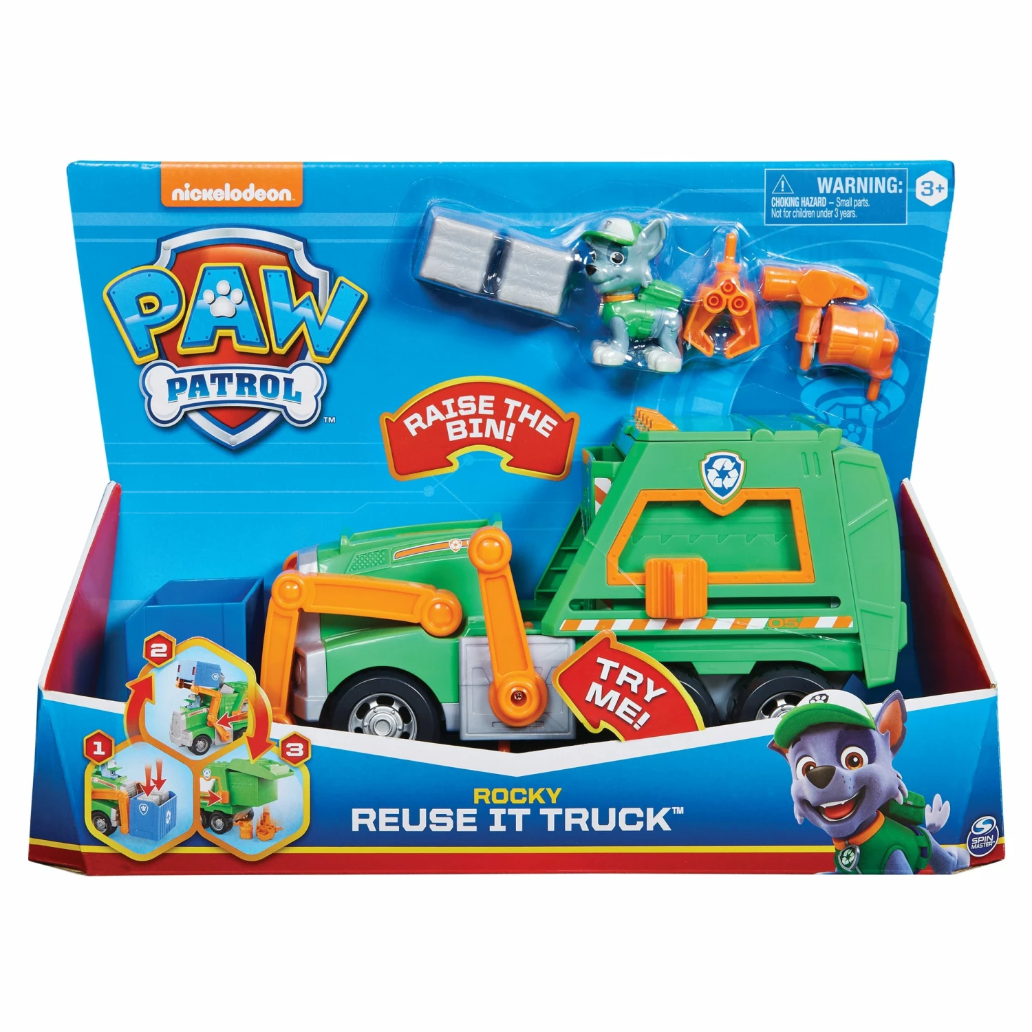 Team up with the rest of the pups and their rescue vehicles (each sold separately) for more PAW Patrol adventures! Bring home recycling fun with Rockys Reuse It Truck!
