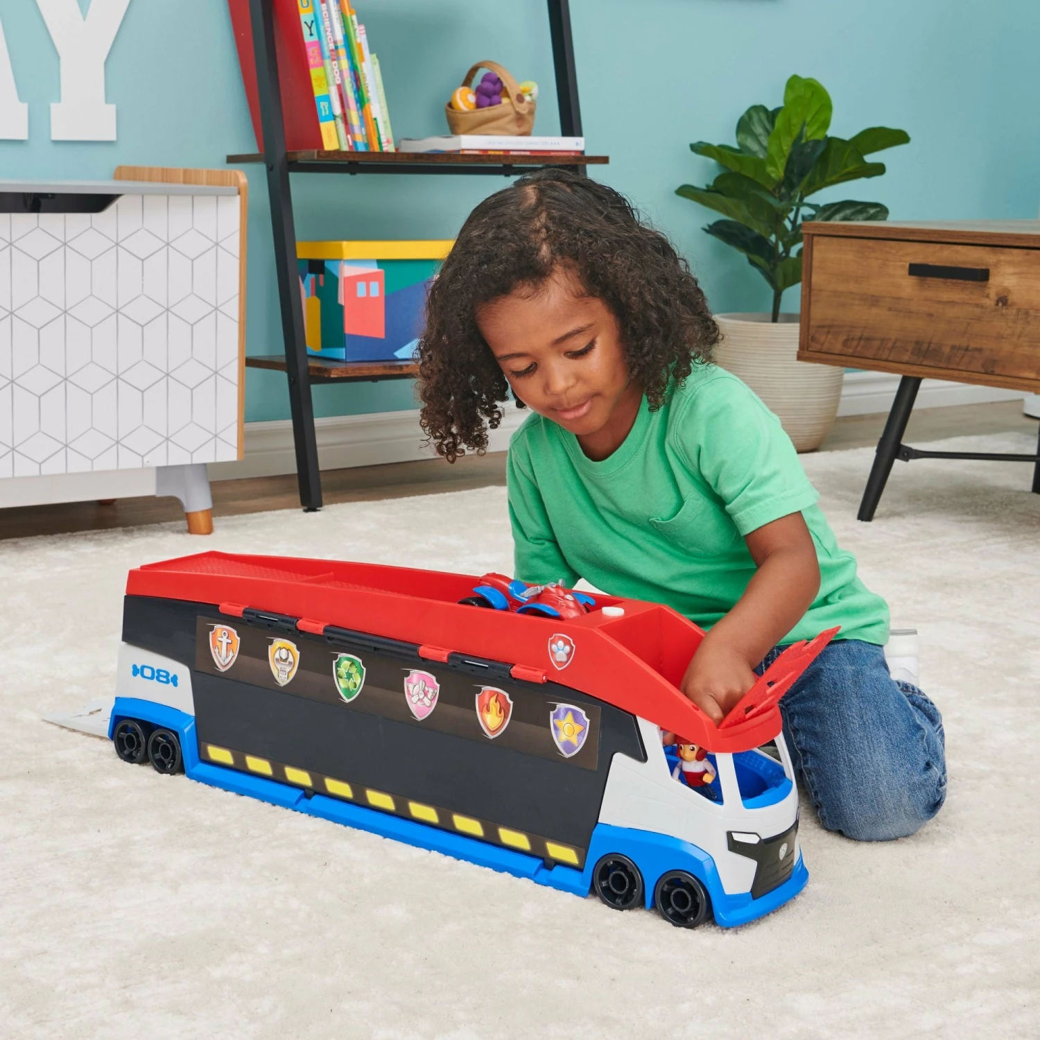 Load Ryder and another pup up the back ramp and use your imagination to play out your rescue missions. Push the button on the side of the PAW Patroller for an epic door transformation. The vehicle’s sides flip up, revealing dual vehicle launchers!