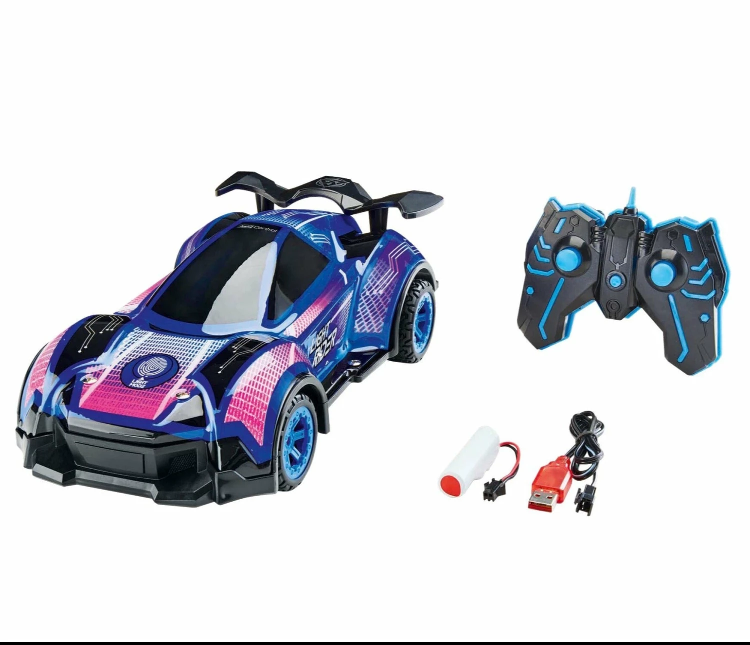 The 2.4 GHz remote control allows you to drive with several friends at the same time and also has ingenious lighting effects integrated.