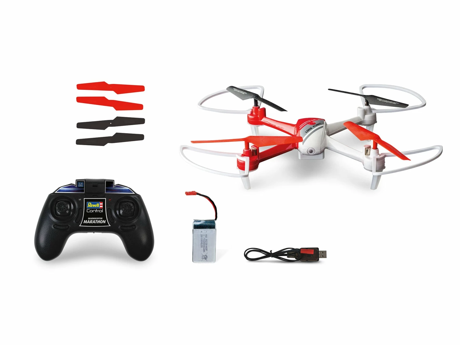 The 4CH GHz remote control ensures precise control. The two-colour LED lighting not only looks good, but also serves as orientation in the air. With flip function. The replaceable LiPo battery is charged simply and conveniently via the supplied USB charger