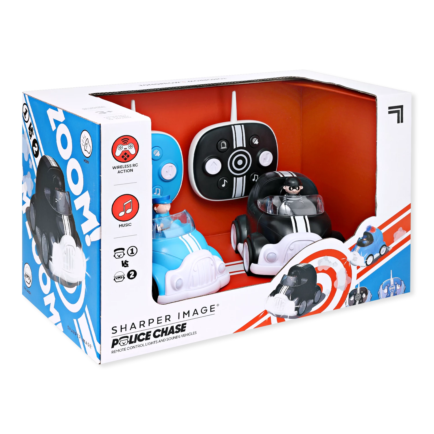 This two-player game pits two remote control vehicles against each other – one is the cop and one is the robber! Chase and bump your opponent using the remote controls provided.