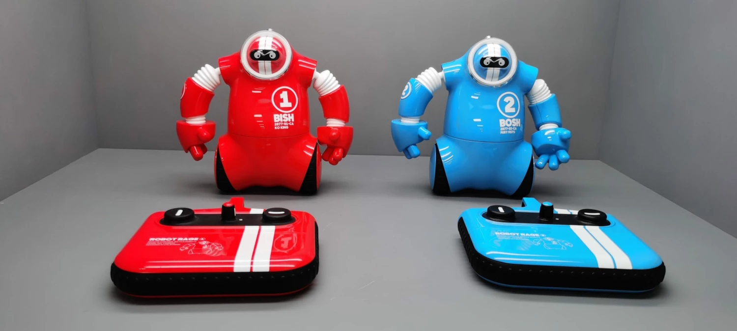 Fast-paced 2-player combat with versus mode. Includes power fist combo punches, cool sound effects, and LED light-up eyes that indicate knock-out level.