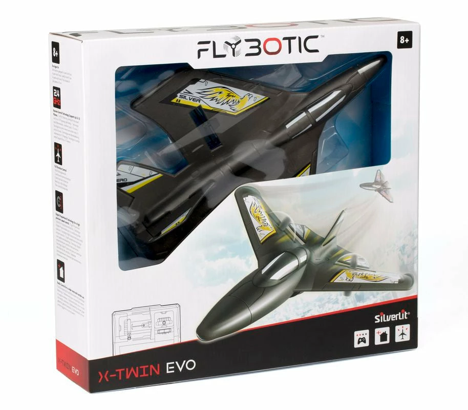 The Silverlit X-twin Evo is an easy-to-fly radio-controlled aircraft for those who dream of tackling the skies. This RC aircraft intended for outdoor use is excellent for the novice pilot who has just begun their flying career. Features 2-Channel 2.4G and light-weight body materials. As this item is an assortment we cannot guarantee a specific style, please let us choose on your behalf or state in the comments section the style you would like and we will do our best. Pictures indicative only. Price is for 1x RC.