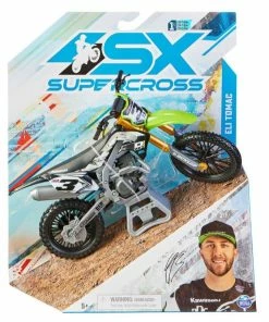 Feel the adrenaline with the all-new, official 1:10 scale die-cast Supercross motorcycles! These authentic racing replicas are highly detailed and look just like the powerful bikes the top pro riders use! Featuring realistic details and graphics, working rear suspension and metal die-cast motors, the 1:10 scale Supercross dirt bikes bring the action and excitement you’ve seen in live events into your home. Turn your living room into a Supercross stadium and race through obstacles, pulling off hairpin turns, whoops, high jumps and more to become Supercross Champion with your very own replica! Each 1:10 scale Supercross bike also includes a display stand, so you can show off your dirt bike in style. Collect all of the 1:10 scale Supercross motorcycles, including replicas of Justin Brayton, Ricky Carmichael, Justin Hill’s bikes and more (each sold separately)! Experience epic Supercross action right at home with the official 1:10 scale die-cast Supercross motorcycles!