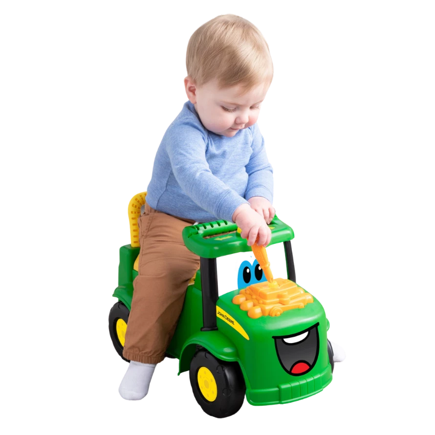 The John Deere Johnny Tractor Foot to Floor is a ride on toy that gives toddlers a fun way to get around!