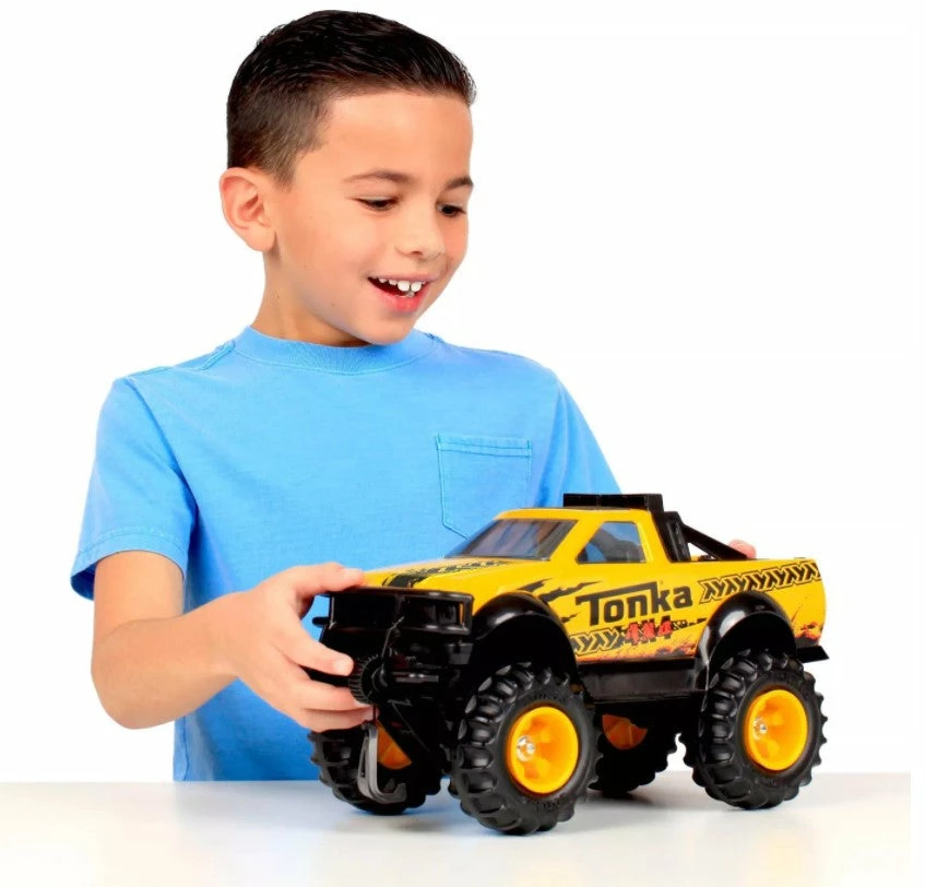 The Tonka Classic Steel 4×4 Pickup Truck is ready for any off-road adventure! Built to take on the most treacherous trails, this sturdy pick-up truck also features a working winch for towing action!Built Tonka tough with sturdy steel construction.