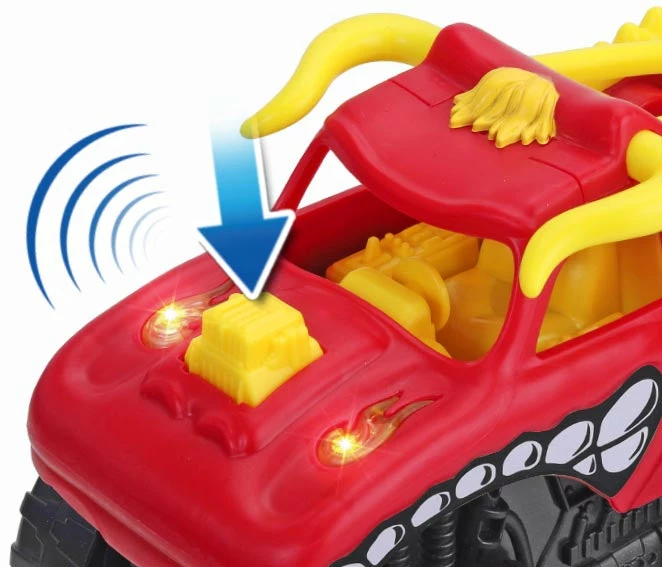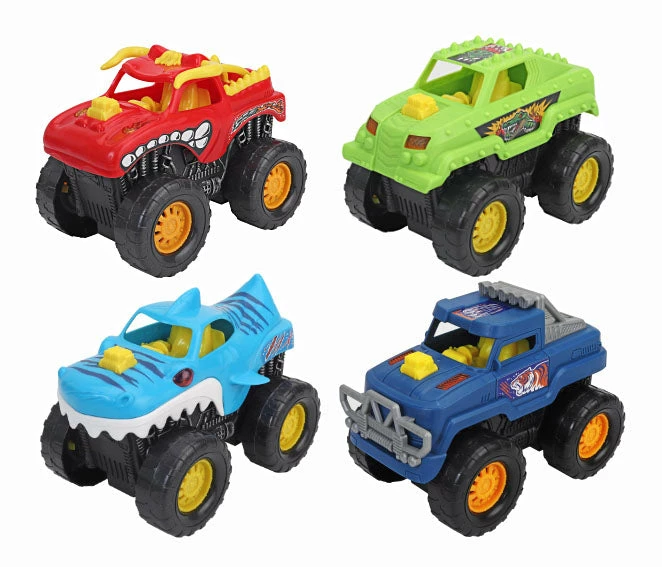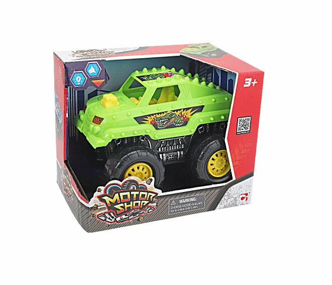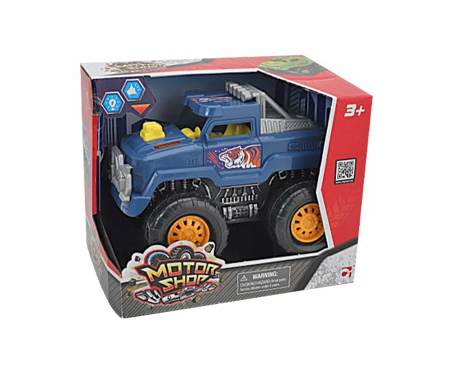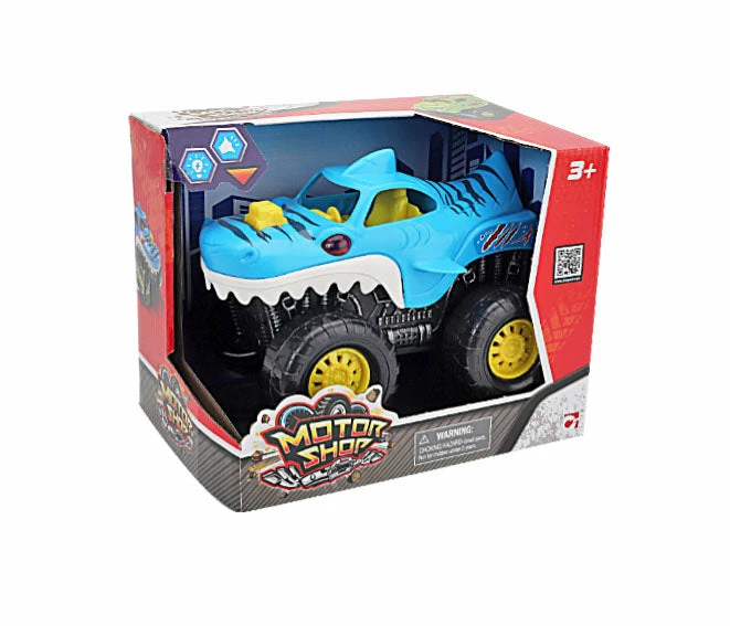 What’s more radical than one monster truck? A whole fleet of them! Press the buttons to rev them along. They light up, zoom forward, lurch back and forth, and make way cool sounds, too! Race them by yourself, with siblings or friends. Four awesome designs include aqua shark, blue tiger, green gator, and red bison. Each vehicle is sold separately. The Motor Shop is your one-stop-shop for monster truck madness!