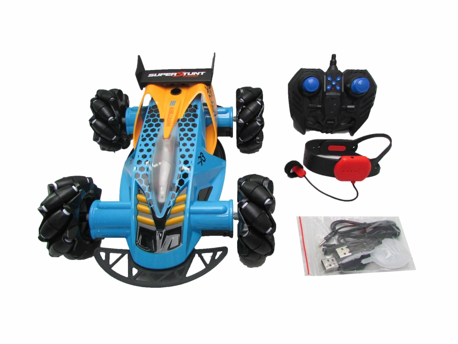 1:12 scale. Full Function with 360 spin rotation. 2.4G Frequency and 4 channel for indoor & outdoor. Controller and Gesture control. Control Time 20mins. RC Distance 30-60 mins. Charge time 3 hours. Suspension for off-road. Add water in the back and watch it be air released for smoke feature. Colour light for night time driving. Includes 7.4 V Battery. USB charger also included and 3.7 V battery for gesture control. 2 AA Batteries for hand controller NOT included.