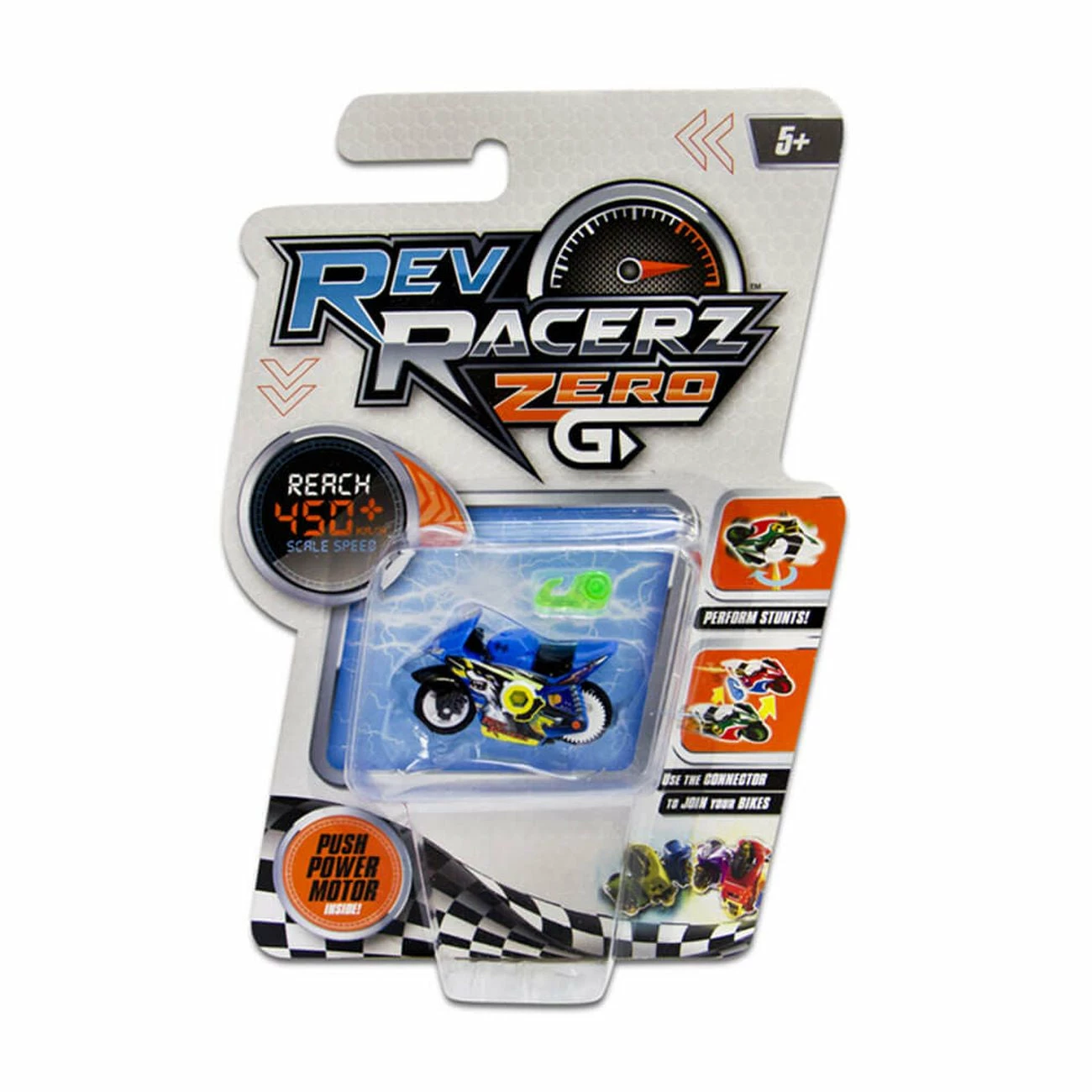 Unleash the speed with Rev Racerz! Grab your bike, rev it up, and release! Watch the bikes reach scale speeds of up to 450km with the push power motor! Race, jump, spin and perform awesome stunts.